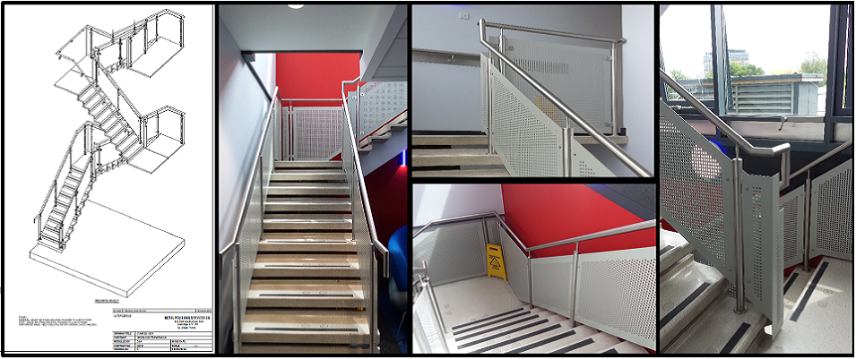 Examples of works completed, balustrades (glazed /perforated paneled etc), handrails (wood, powder coat, galvanized, stainless), staircases, fire escape, balconies , walk ways , steel flooring, mezzanines, decorative cladding, architectural metalwork, to suit your requirements and budgets.